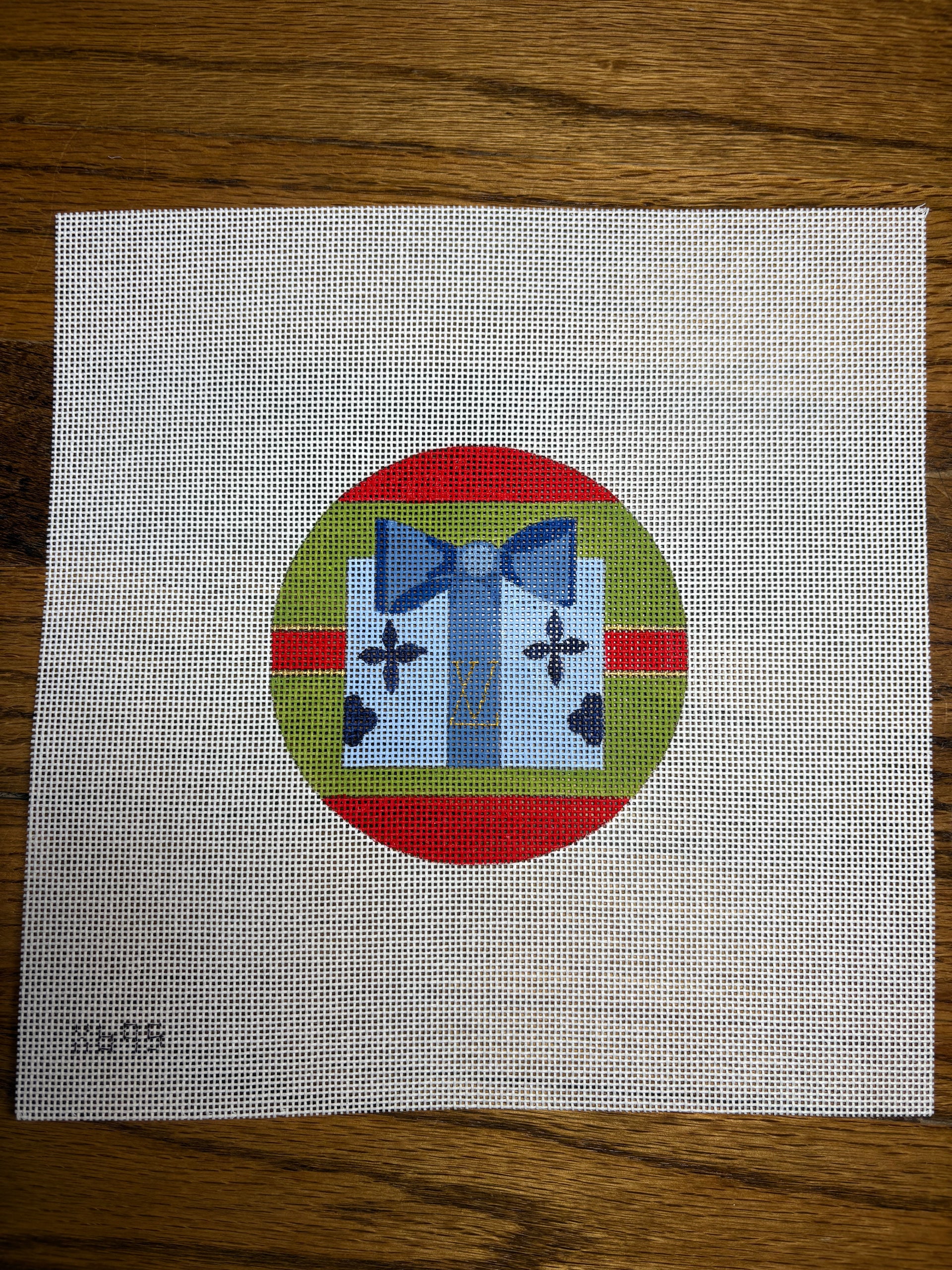 X695 LV Present , 18 mesh, Handpainted by Alice Peterson, Design Size: 4" Round