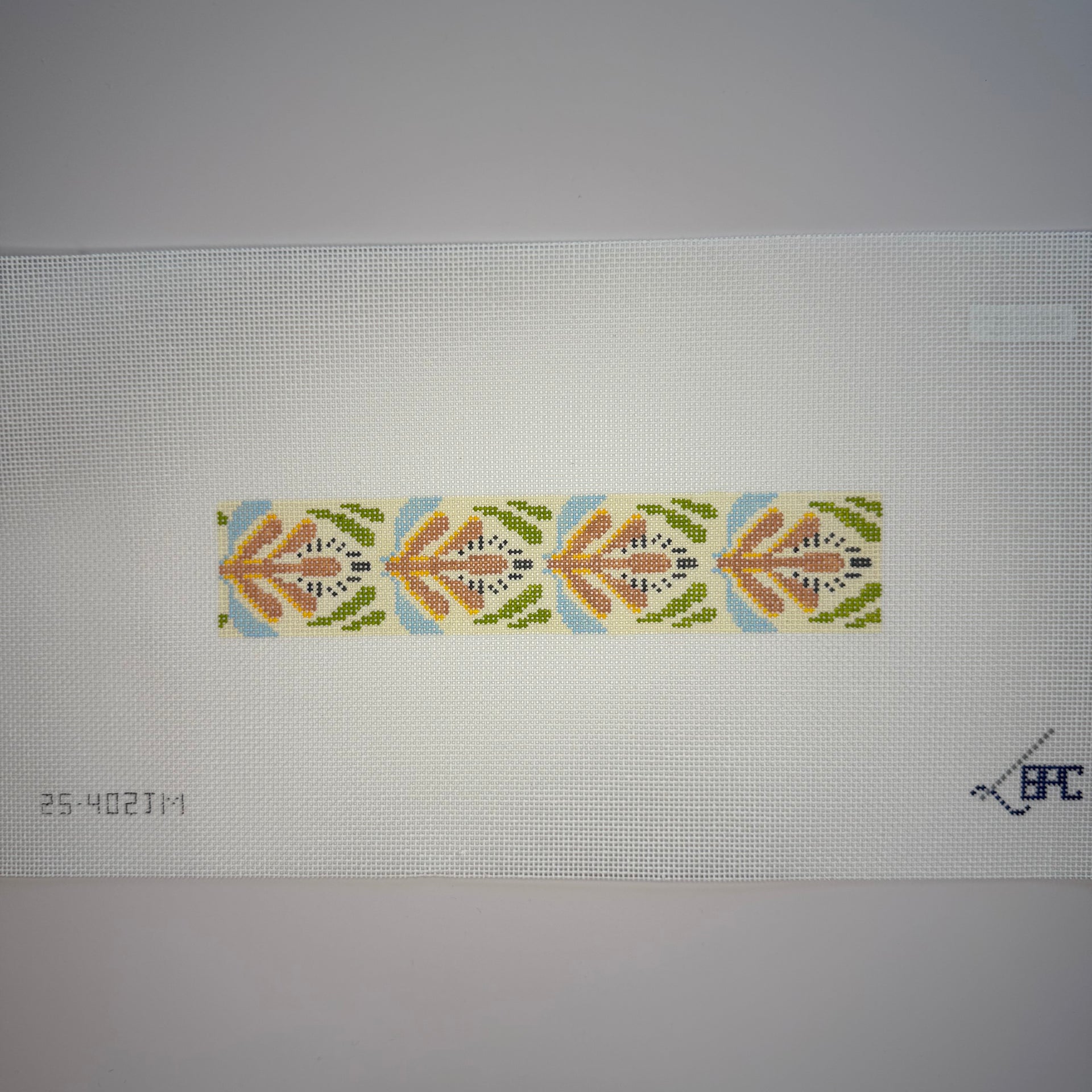 25-402 Key Fob - Julia McGahee , 18 mesh, Handpainted by Blueberry Point Canvas, Design Size: 7.5 x 1.5"