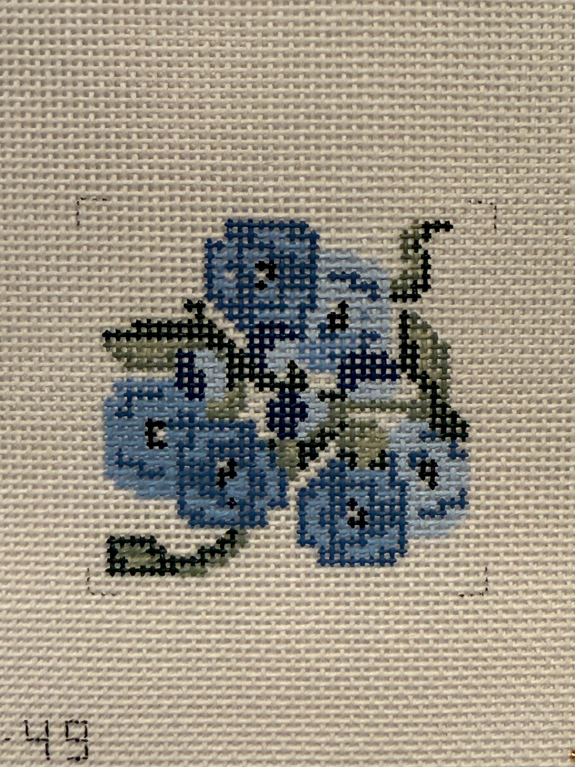 CC-49 Blue Flowers on White Cozy Insert , 18 mesh, Handpainted by Evergreen Needlepoint, Design Size: 2.25" square