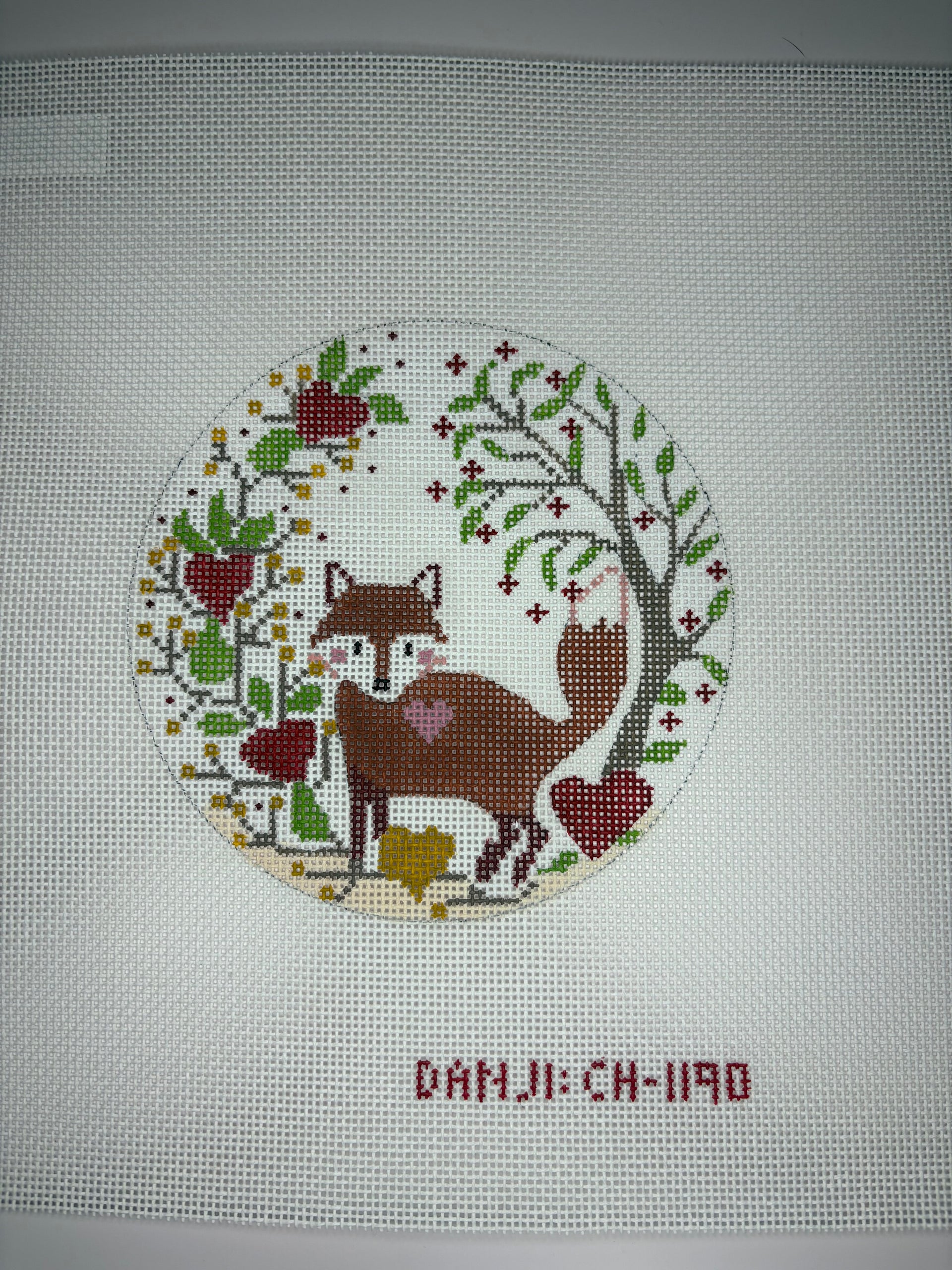 CH-1190 February Fox , 18 mesh, Handpainted by Danji Designs, Design Size: 4.75" Round