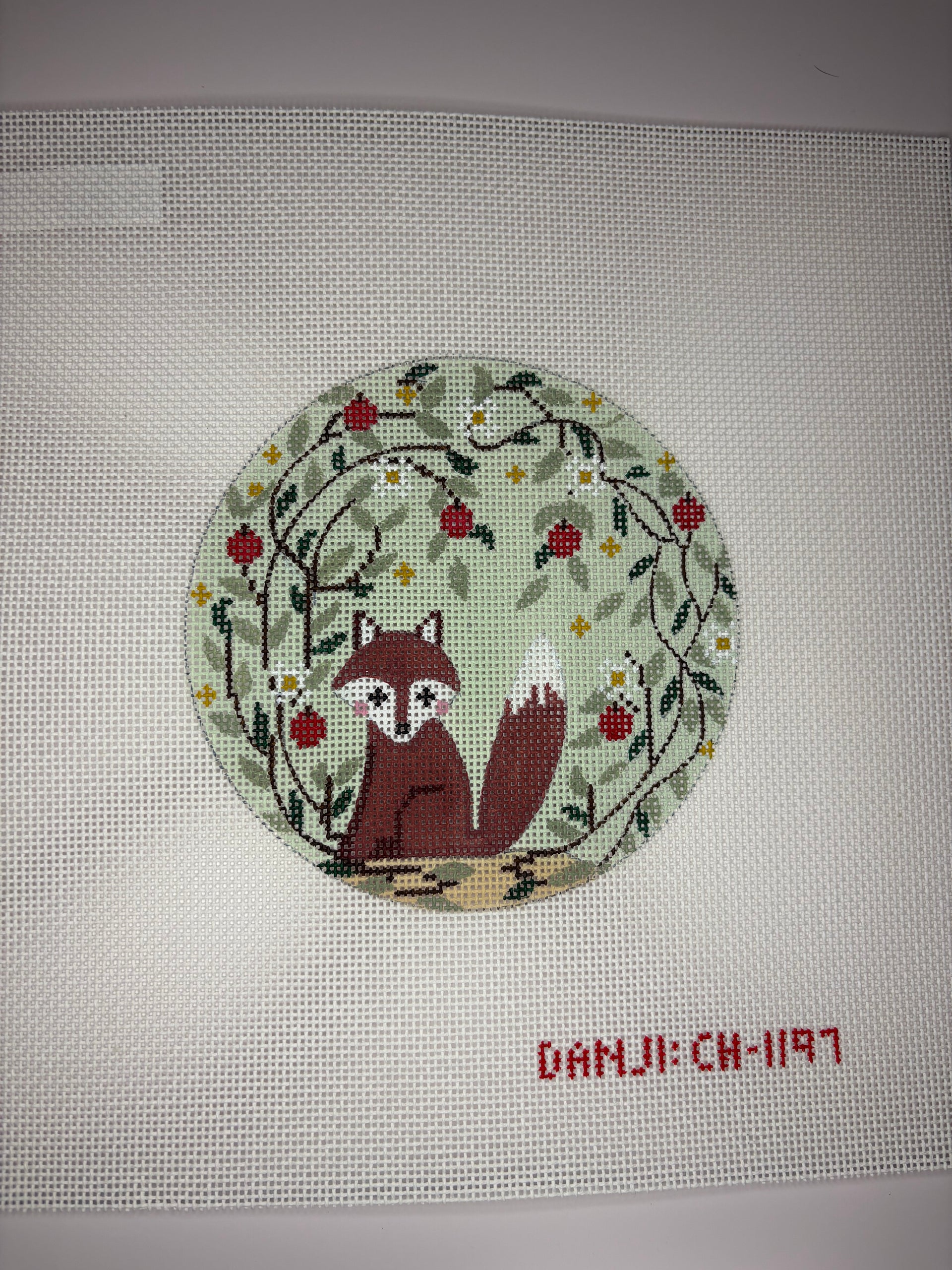 CH-1197 September Fox , 18 mesh, Handpainted by Danji Designs, Design Size: 4.75" Round