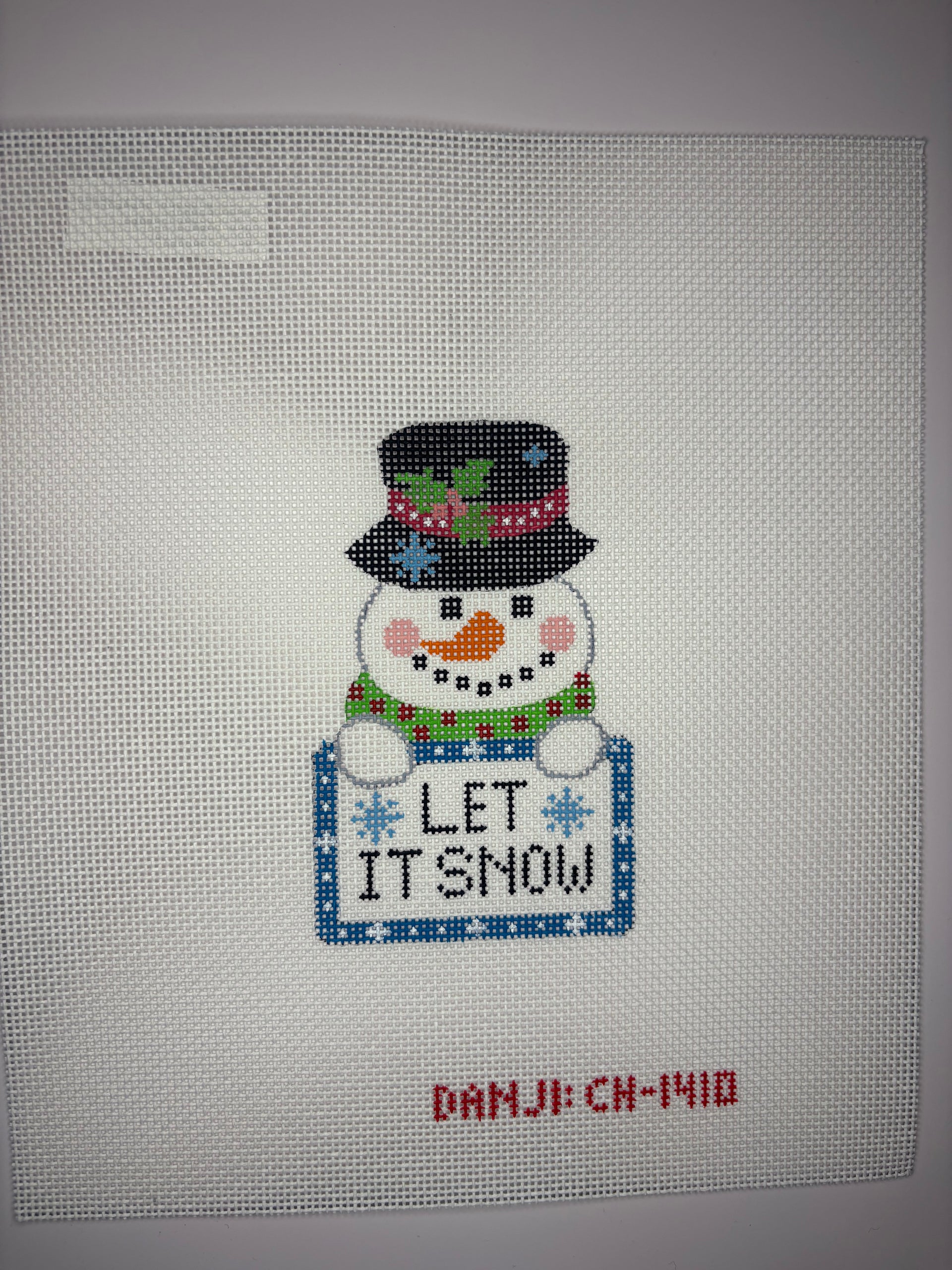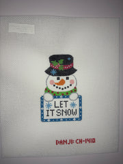 CH-1410 Snowman Tag - Let it Snow , 18 mesh, Handpainted by Danji Designs, Design Size: 4 x 3"