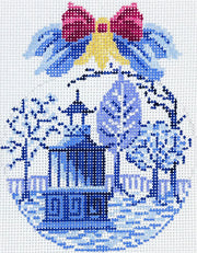 KC-KAH54-18 Ice Blue Buds over Garden Folly, 18 mesh, Handpainted by Kelly Clark for Colonial Needle Co, Design Size: 3.5 x 4.75"