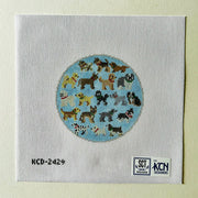 KCD2429 Blue Dogs Round Canvas, 18 mesh, Designed by KCN Designers, Design Size: 4.5" Round