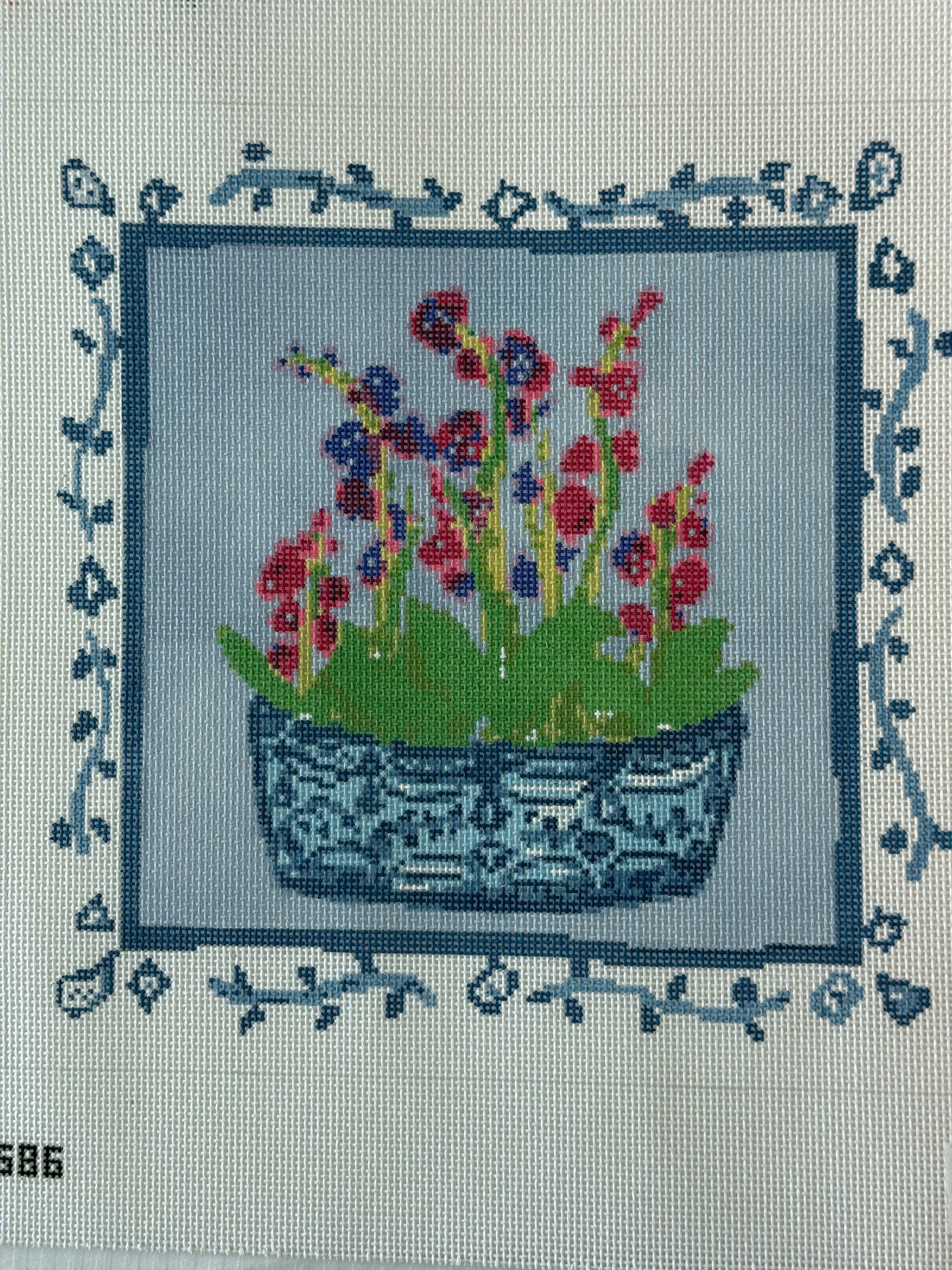 KCD4586 Chinoserie Flowers , 13 mesh, Handpainted by KC Needlepoint Designers, Design Size: 11.5" Square