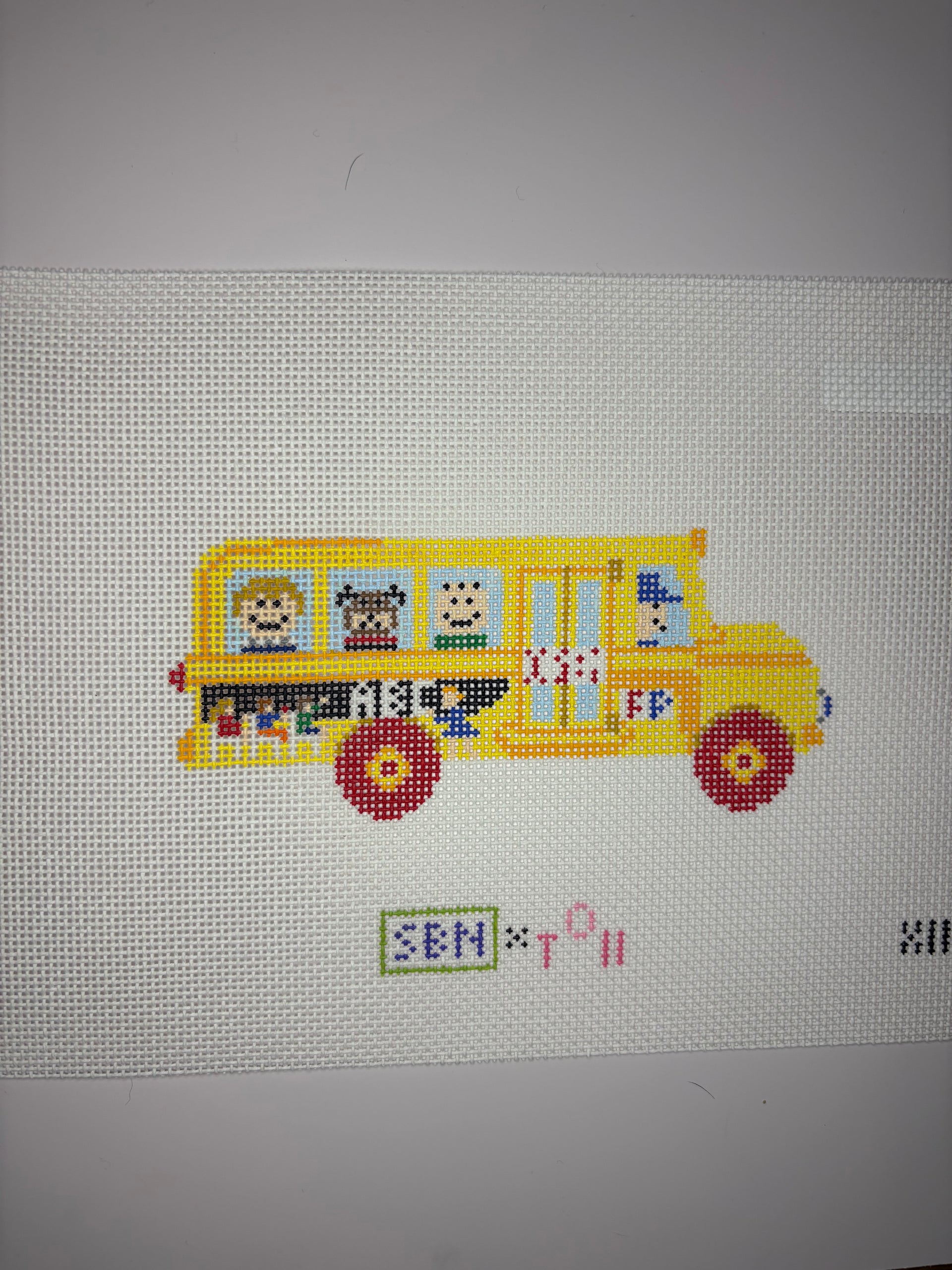 OTHX119 Fisher Price Schoolbus , 18 mesh, Handpainted by Susan Battle Needlepoint, Design Size: 5 x 2"