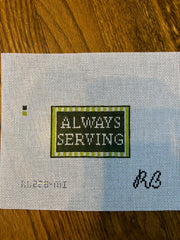 RR228-MI Always Serving , 18 mesh, Handpainted by Rachel Barri Designs, Design Size: 3 x 2"
