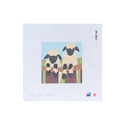 SAS-NIN-041 Two Sheep on Fence, 18 mesh, Handpainted by Saturnalia Stitching, Design Size: 4 x 4"