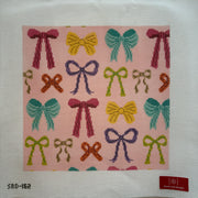 SRD-162 Ribbons and Bows Pillow , 13 mesh, Handpainted by Stitch Rock Designs, Design Size: 10.5" square