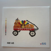 SUE-W5 Thanksgiving Wagon , 18 mesh, Handpainted by Atlantic Blue Canvas, Design Size: 5 x 3.5"