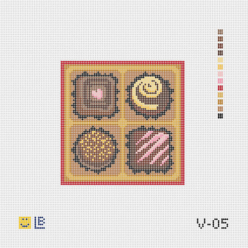 V-05 4 Piece Chocolate Box, 18 mesh, Handpainted by Lauren Bloch, Design Size: 3.75" Square