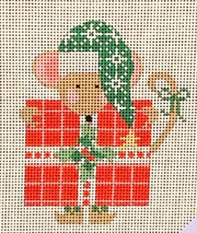 CH-434 Mouse with Red Present with Stitch Guide, 18 mesh, Handpainted by Danji Designs, Design Size: 3 x 3.75"