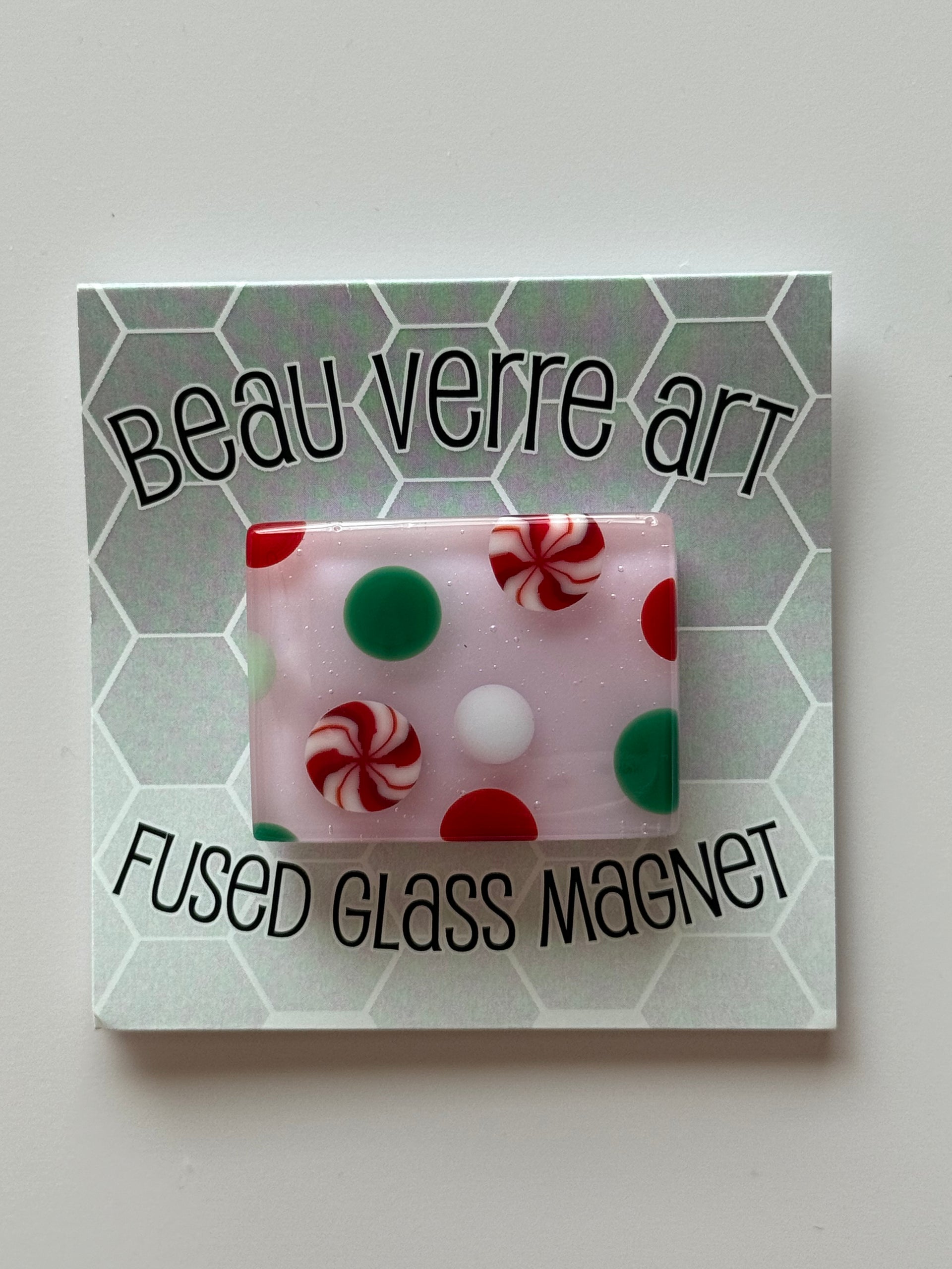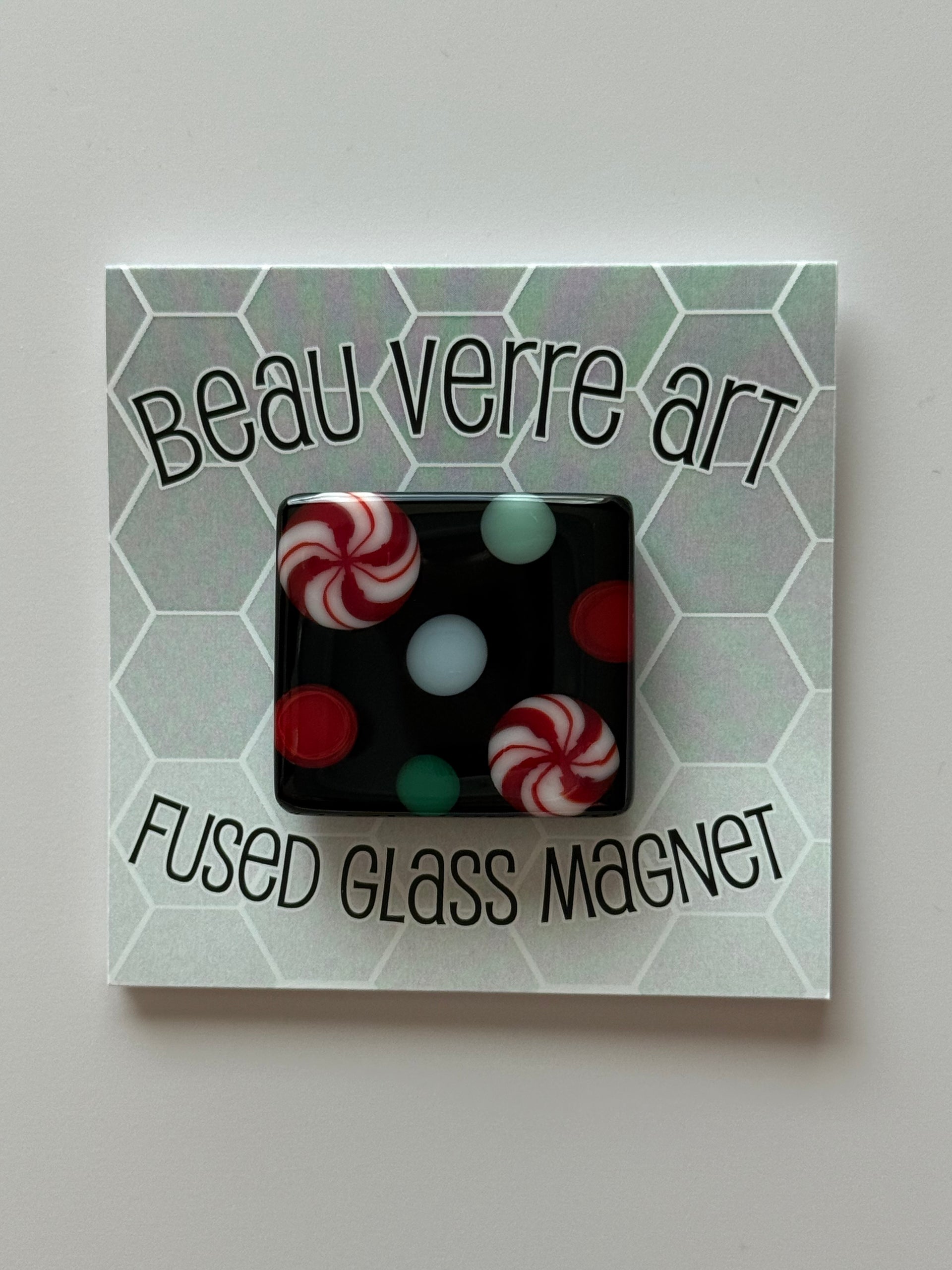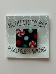 Fused glass needleminder magnet from Beau Verre Arts. Each is handmade and unique; design may vary slightly from photo.