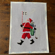 PR-219 Santa Golfer, 13 mesh, Handpainted by Pip and Roo for Stitchtent, Design Size: 14.5 x 12.5"