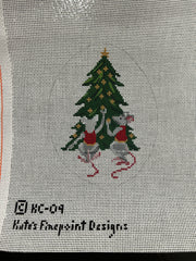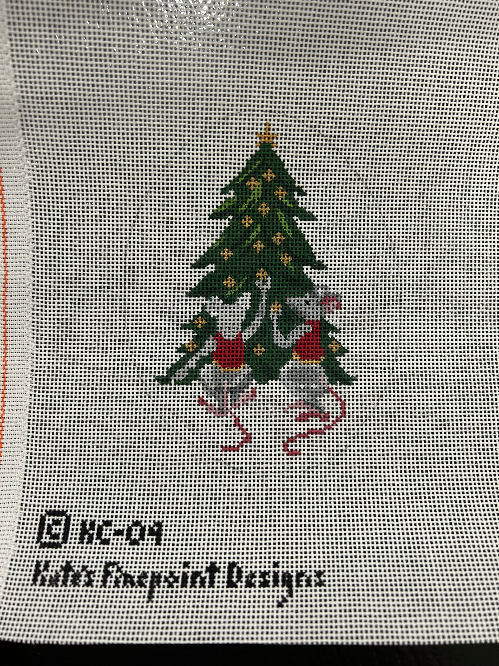 Holiday Mice Decorating Tree - KC09, 18 mesh, Handpainted by Kate's Finepoint for Chris Lewis, Design Size: 4 x 5"