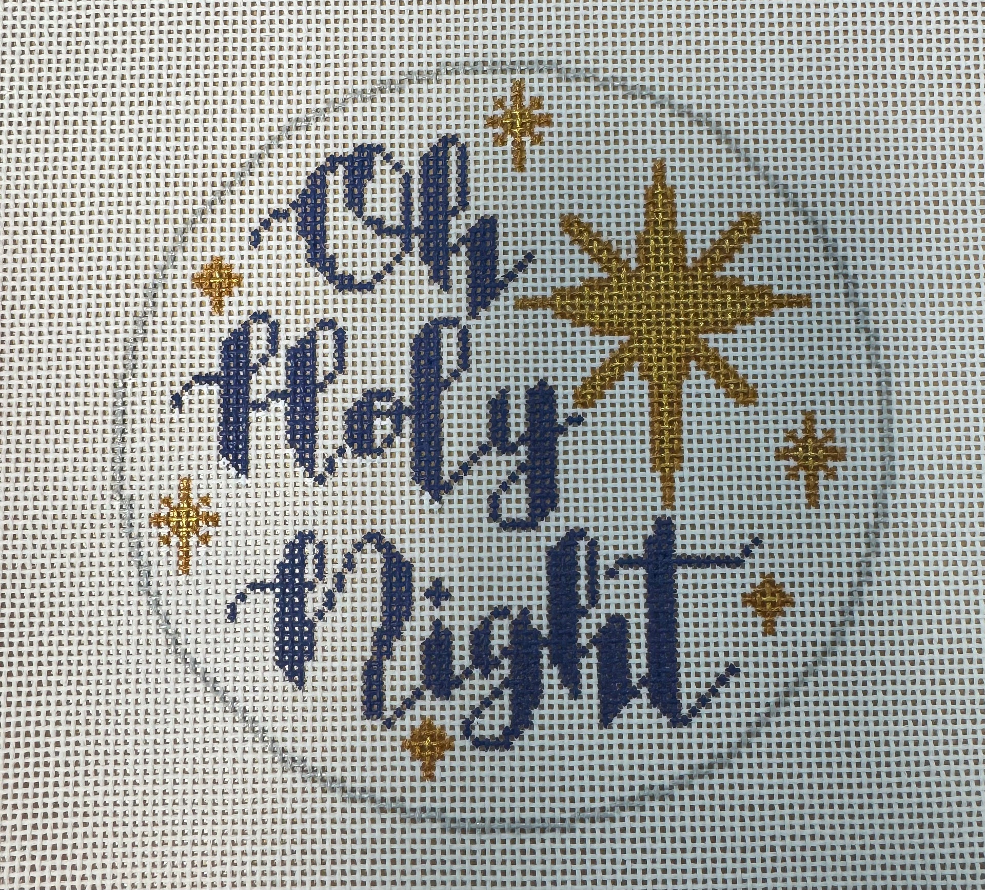 This stitch painted needlepoint canvas features the phrase "Oh Holy Night" in an elegant script for the beloved carol and a shimmering golden star, this timeless design captures the spirit of Christmas.