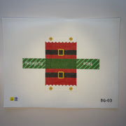 BG-03 3D Mini Striped Santa Bag, 18 mesh, Handpainted by Lauren Bloch Designs, Design Size: 8.75 x 6.25"