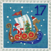 KH-PL-17 Klara Hawkins – Advent Stamp #17 – Santa in Dragon Boat - TS, 18, mesh, Handpainted by Kate Dickerson, Design Size: 5 x 5 inches