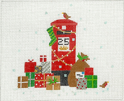 KH-PL-29 Klara Hawkins – London Christmas – Letter Box w/ Gifts - TS, 18, mesh, Handpainted by Kate Dickerson, Design Size: 5⅜ x 4½ inches