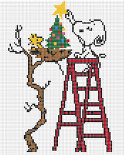 PNTS-XMAS07 PEANUTS Christmas - Snoopy Decorating Tree Canvas - SE, 18 Mesh, Handpainted by Officially Needlepoint, Design Size: