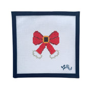 Santa Bow, 13 mesh, Handpainted by Boxwood Needlepoint, Design Size: 3 x 3"