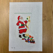 SR0110 Santa With List - Boy Toys, Stocking - TS, 13 mesh, Handpainted by Susan Roberts, Design Size: 19" high