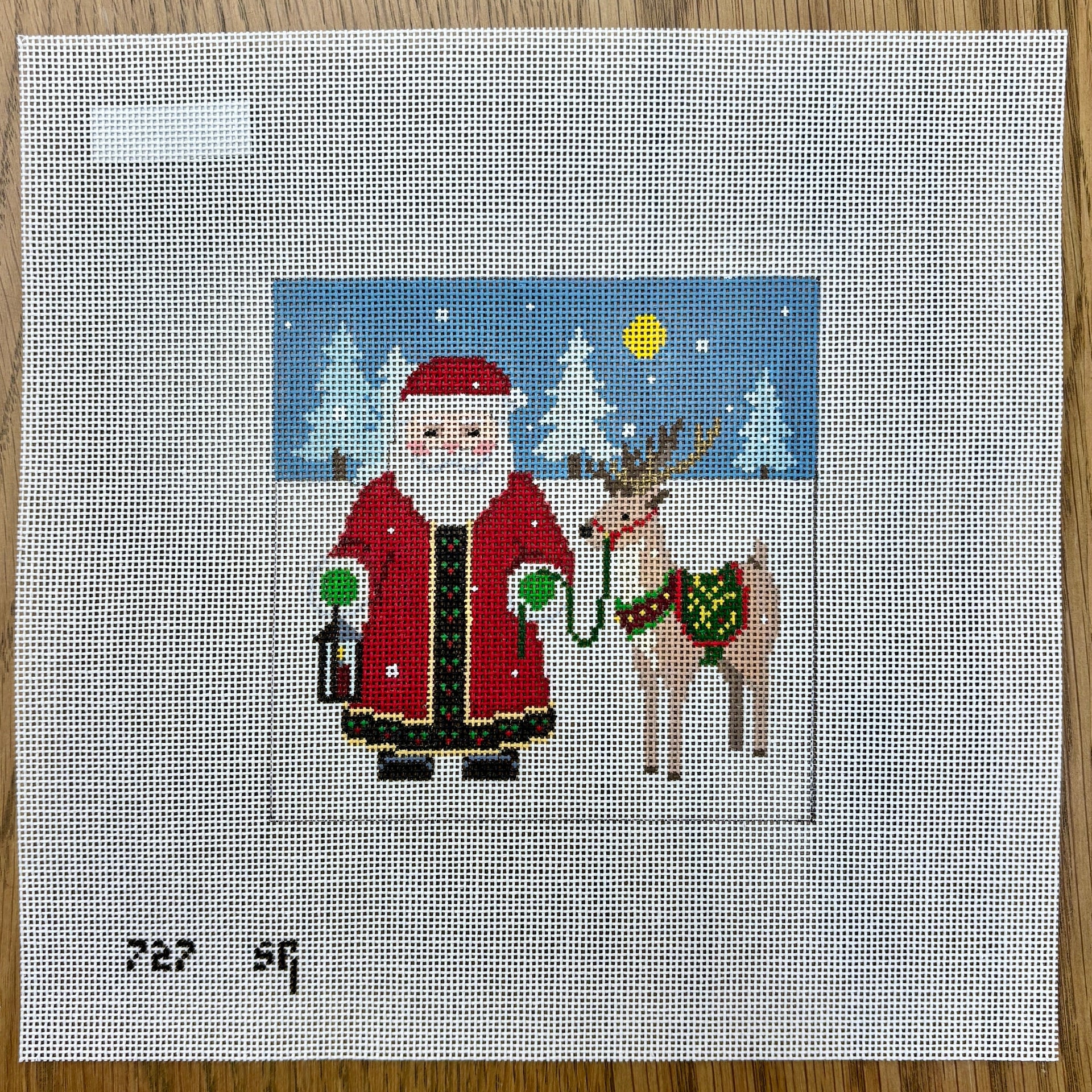 SR0727 Santa With Reindeer, 5" Square - 18 mesh - TS, 18 mesh, Handpainted by Susan Roberts, Design Size: 5 x 5"