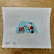 SR1207 Santa's Village, Santa Feeding Reindeer - 18 mesh - TS, 18 mesh, Handpainted by Susan Roberts, Design Size: 3.5 x 2"