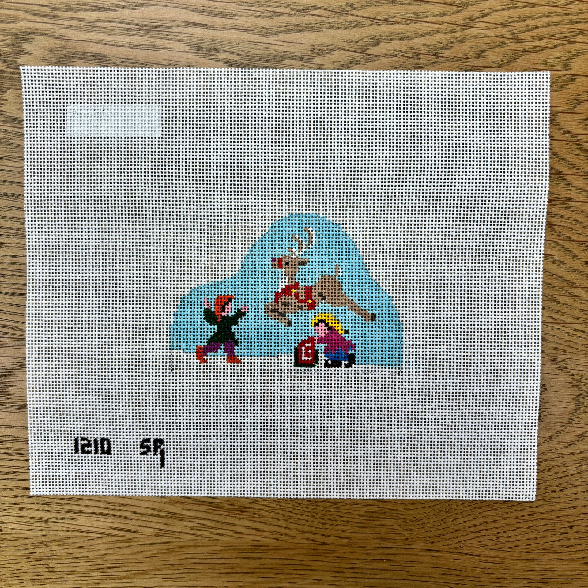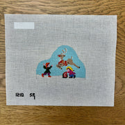 SR1210 Santa's Village, Comet Leaping - 18 mesh - TS, 18 mesh, Handpainted by Susan Roberts, Design Size: 3.75 x 2.5"