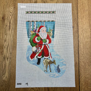 SR3202 Santa with Deer, Stocking - TS, 13 mesh, Handpainted by Susan Roberts, Design Size: 19" tall