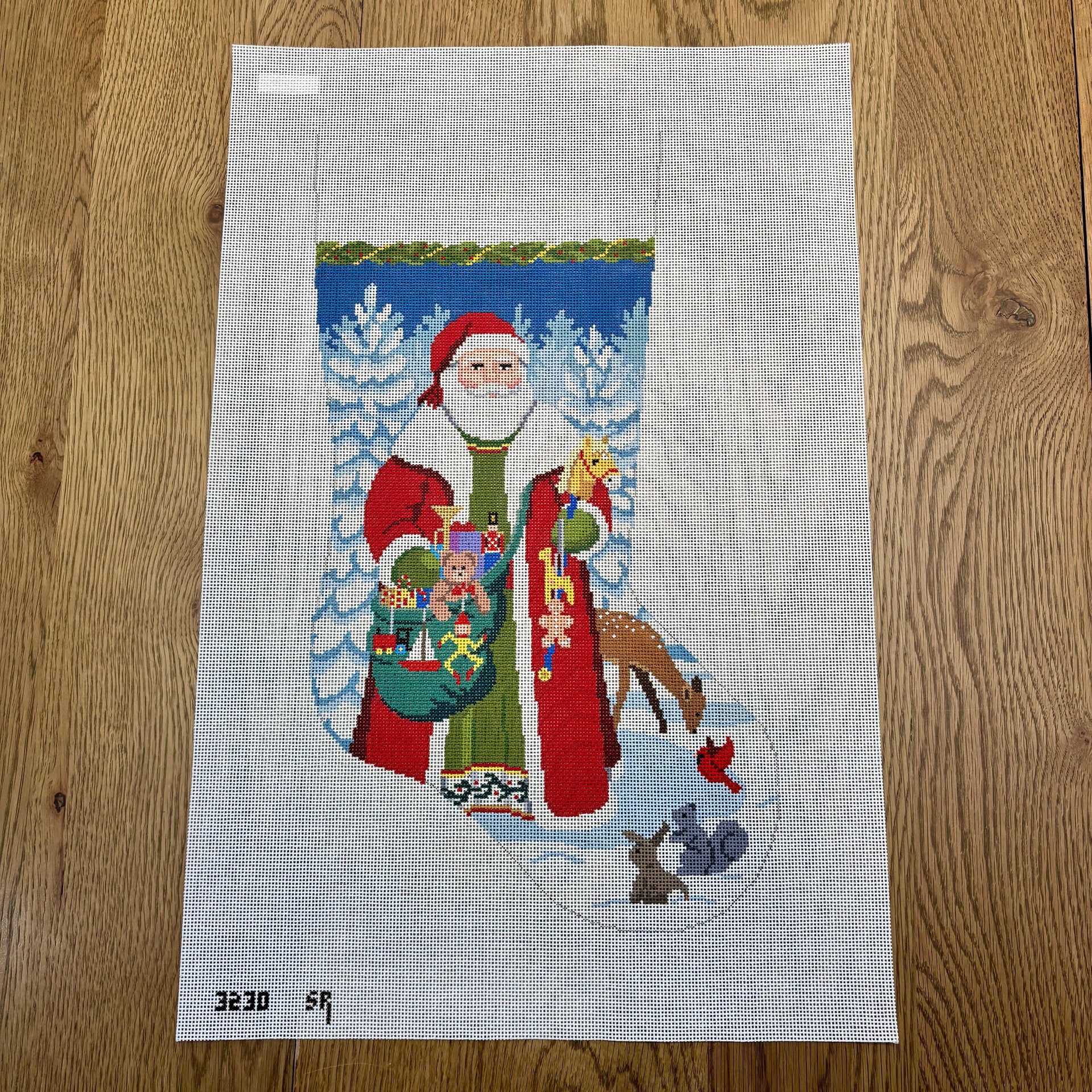 SR3230 Woodland Santa, Stocking - TS, 13 mesh, Handpainted by Susan Roberts, Design Size: 19" tall