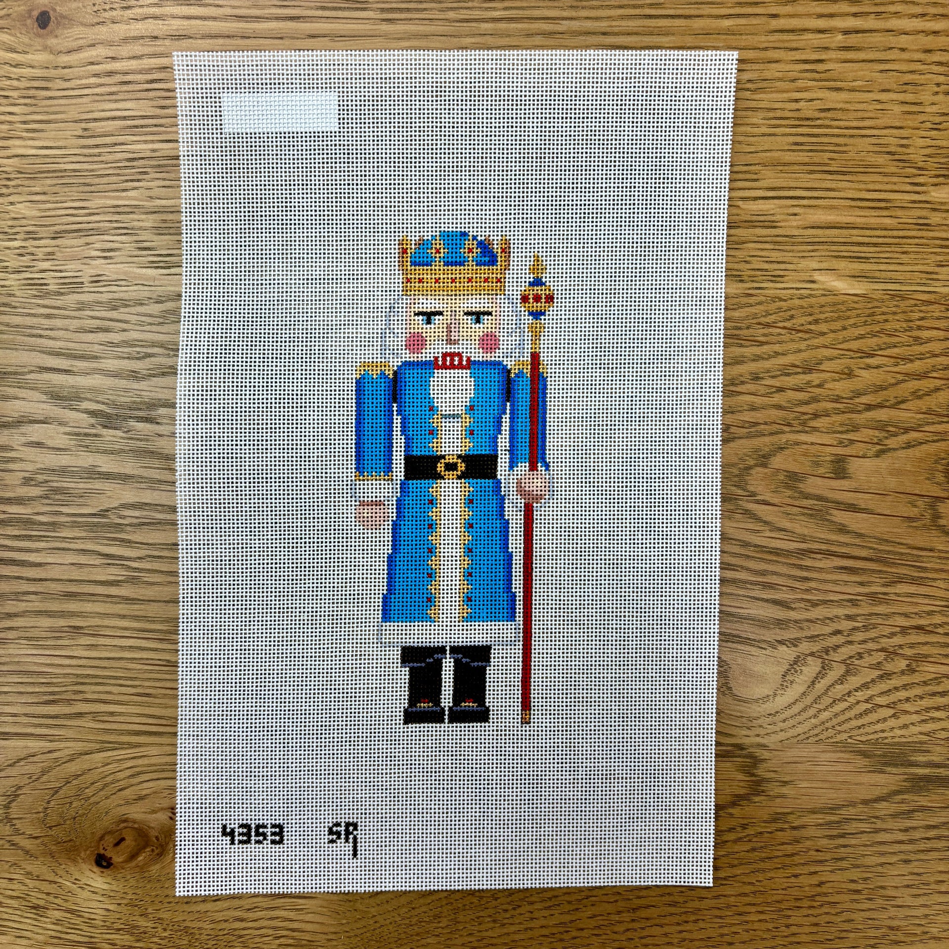 SR4353 Nutcracker, Blue King with Scepter - 18 mesh - TS, 18 mesh, Handpainted by Susan Roberts, Design Size: 6.5" tall