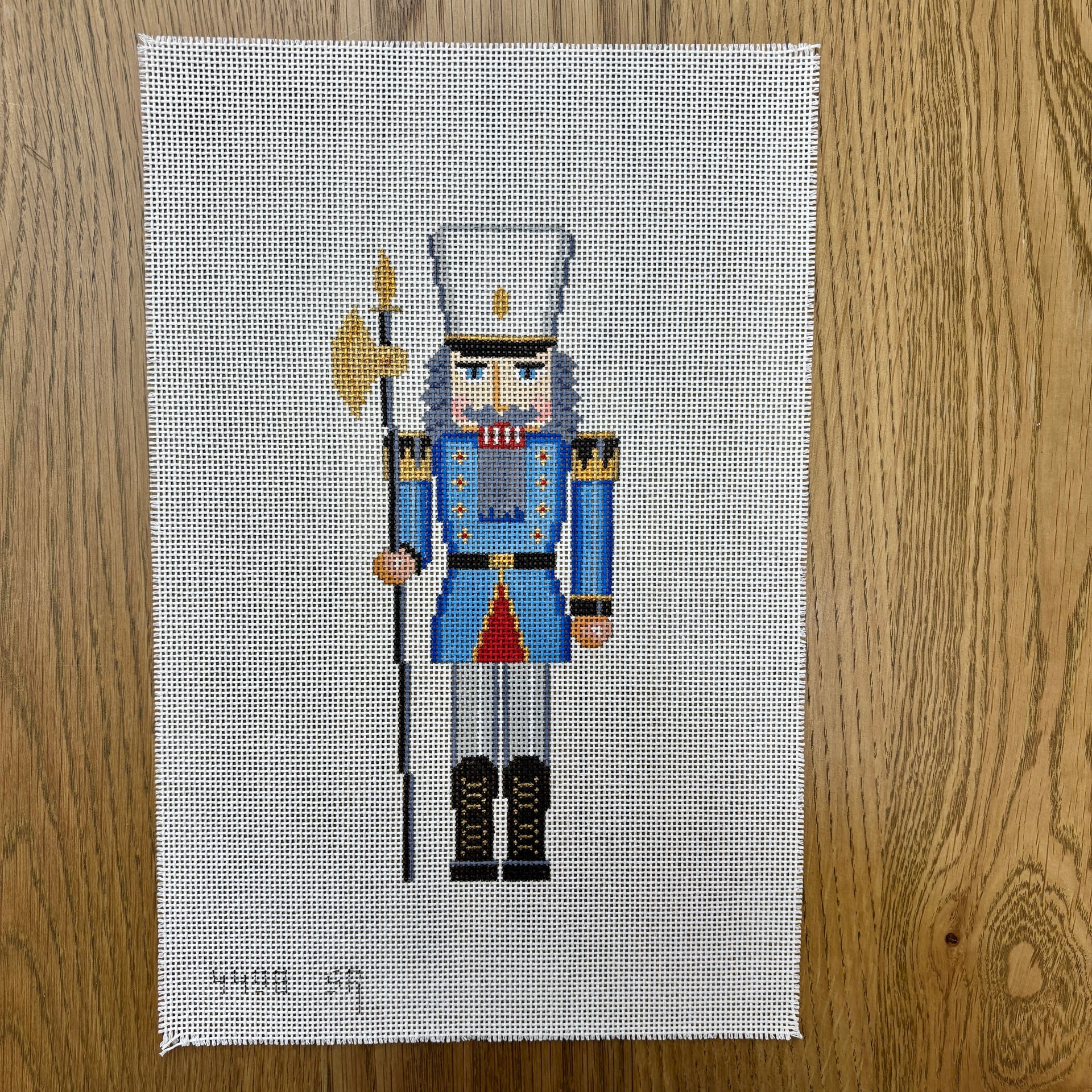 SR4498 Nutcracker, Guard and Axe - 13 mesh - TS, 13 mesh, Handpainted by Susan Roberts, Design Size: 9.5" tall