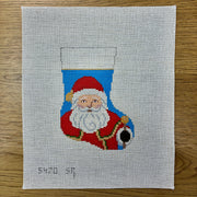 SR5470 Santa with Staff, Mini Stocking - TS, 13 mesh, Handpainted by Susan Roberts, Design Size: 6.25" tall