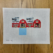 SR5505-18 Reindeer Barn, Mini House - 18 mesh - TS, 18 mesh, Handpainted by Susan Roberts, Design Size: 9 x 5"; 2.5 x 2.75 x 2" finished size