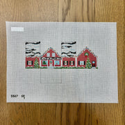 SR5527 Red Christmas House, Mini House - 18 mesh - TS, 18 mesh, Handpainted by Susan Roberts, Design Size: 9 x 5"; 2.5 x 2.75 x 2" finished size