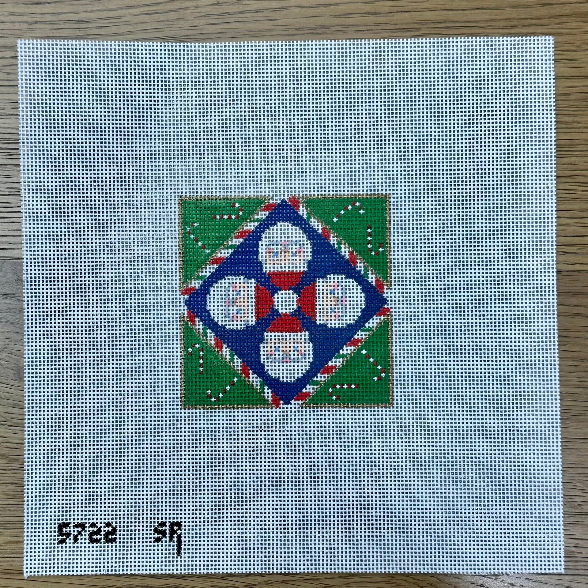 SR5722 Santa Faces, 3" Ornament - TS, 18 mesh, Handpainted by Susan Roberts, Design Size: 3 x 3"