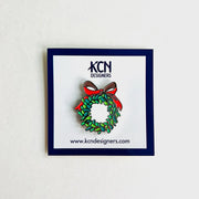 Wreath with Red Bow Needleminder Magnet from SCT Designs for KCN Designers.  Strong neodymium magnet holds your needlepoint tools.