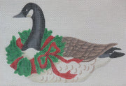 XM-01 Christmas Ornament – Canada Goose w/ Wreath - TS, 18, mesh, Handpainted by Kate Dickerson, Design Size: 6¾ x 4½ inches