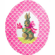 KC-KEA101-18 Pink Bunny with Tulip Egg, 18 mesh, Handpainted by Colonial Needle, Design Size: 3.25 x 4"
