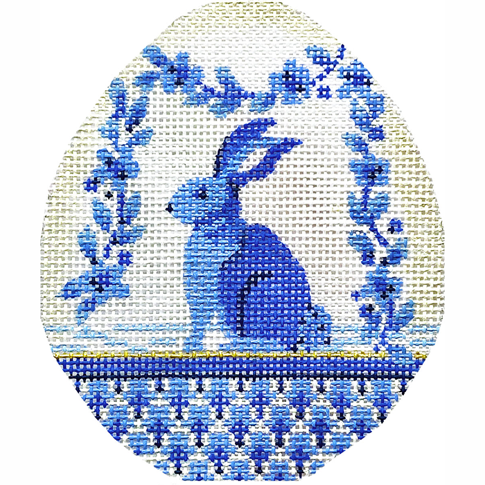 KC-KEA96-18 Blue Garland Bunny Egg, 18 mesh, Handpainted by Colonial Needle, Design Size: 3.25 x 4"