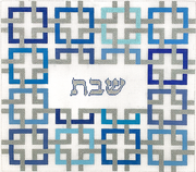 CHAL-01 Interlocking Squares w/ “Shabat” – mixed blues & silver - TS