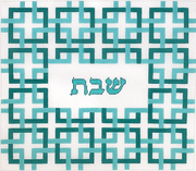 CHAL-02 Interlocking Squares w/ “Shabat” – two-tone aquas - TS