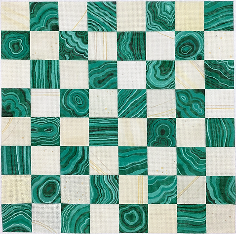 CHB-01 Chess/Checkers Board – Malachite & Ivory - TS, 18, mesh, Handpainted by Kate Dickerson, Design Size: 16¼ square inches