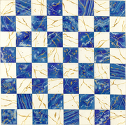 CHB-02 Chess/Checkers Board – Lapis Lazuli & Gold-laced Crystal Quartz - TS, 18, mesh, Handpainted by Kate Dickerson, Design Size: 16¼ square inches