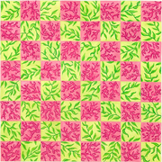 CHB-04 Chess/Checkers Board – Lilly-inspired Coral & Vines – pinks & greens - TS, 18, mesh, Handpainted by Kate Dickerson, Design Size: 16¼ square inches
