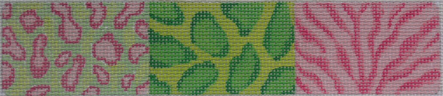 CU-46 Cuff – Animal Patterns Patchwork – pinks & greens - TS, 18, mesh, Handpainted by Kate Dickerson, Design Size: 7 x 1½ inches