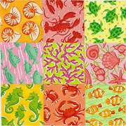 TTT-06 Tic Tac Toe Board – Lilly-inspired Seaside Patchwork – yellows, oranges, pinks & greens - TS, 13, mesh, Handpainted by Kate Dickerson, Design Size: 13 x 13 inches