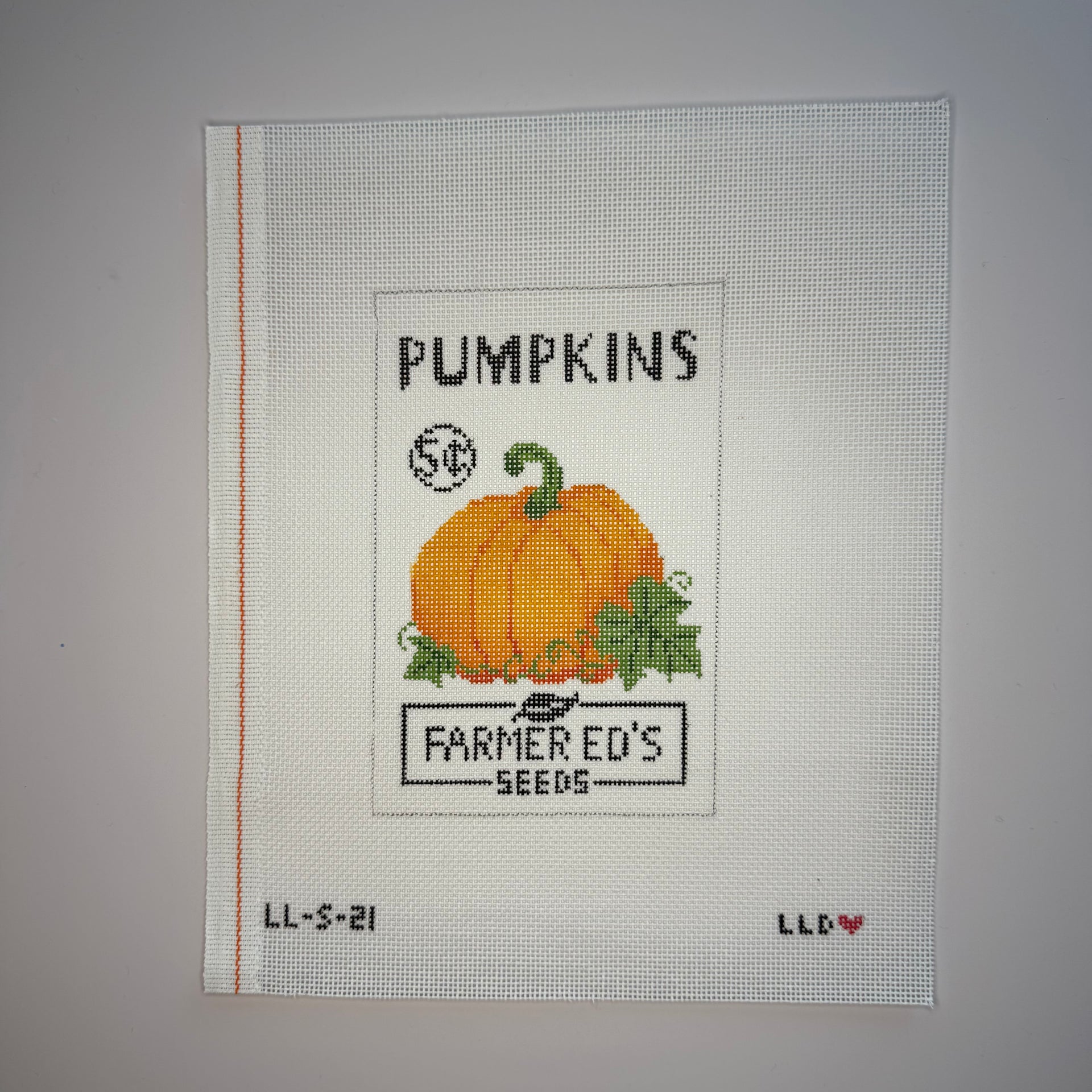 Pumpkin Seed Packet 18 LL-S-21, 18 mesh, Handpainted by LauraLove Designs, Design Size: 6 x 4"