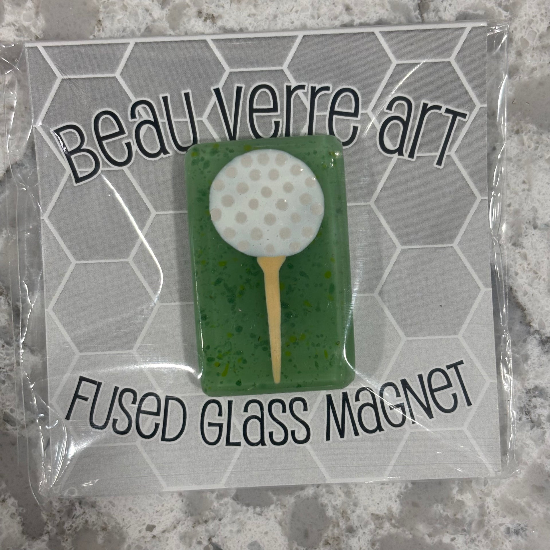 Fused glass needleminder magnet from Beau Verre Arts. Each is handmade and unique; design may vary slightly from photo.